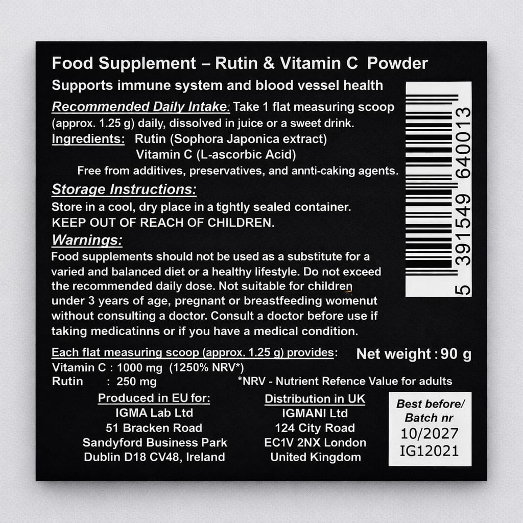 • 90 g IGMA RUTIN ASCORBIC MAX powder (Vitamin C 80% + Rutin 20%)
